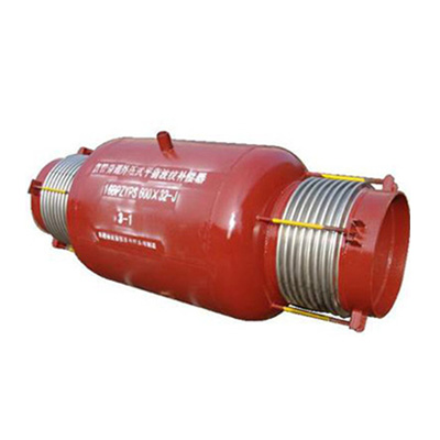 分为单式旁通压力平衡式波纹膨胀节和复式旁通压力平衡式波纹膨胀节,采用同一种规格的波纹管,体积小、成本低、导向性好,稳定性好。主要用于吸收轴向位移并能平衡波纹管的压力推力,内压推力载荷由自身构件平衡、承受,用于不允许有较大推力的场合。该补偿器主要用于补偿管系的轴向位移,不能吸收横向及角向位移,一组波纹管承受内压,一组波纹管承受外压。介质通过一组波纹管流向另一端管内,介质流向走曲线,因此补偿器流阻较大,适用于介质压力高、密度低、流速不太高且固定支架设置不易的直线管系。该补偿器具有补偿量大,无内压推力等优点,但价格较高,建议在同一管线不要过多安装此补偿器。